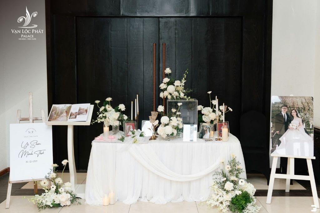 Dù lựa chọn tự trang trí hay mang concept từ đơn vị bên ngoài, bàn gallery tiệc cưới vẫn luôn là một phần ý nghĩa giúp ngày vui trở nên trọn vẹn hơn. Và với những không gian tổ chức tiệc cưới chỉn chu như tại Vạn Lộc Phát Palace, bàn gallery có thêm điều kiện để được đặt để hài hòa, tôn lên câu chuyện riêng của mỗi cặp đôi một cách trọn vẹn và tinh tế.