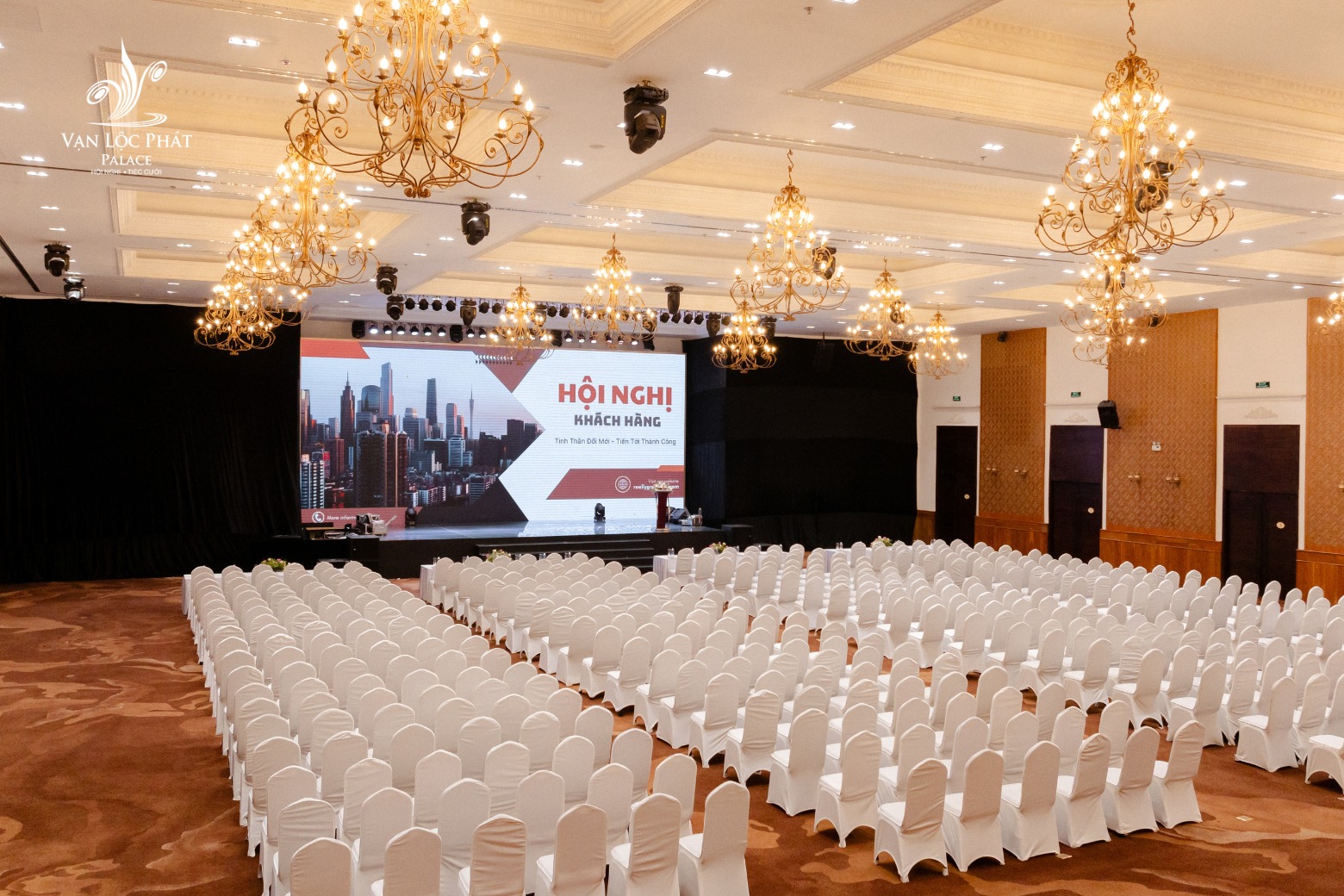 Bên cạnh việc tư vấn bố trí không gian, Vạn Lộc Phát Palace còn trang bị một hệ thống hỗ trợ sự kiện toàn diện, bao gồm âm thanh, ánh sáng chuyên nghiệp, màn hình LED độ phân giải cao và các thiết bị trình chiếu hiện đại khác. Tất cả nhằm đảm bảo sự kiện của bạn không chỉ diễn ra suôn sẻ mà còn để lại dấu ấn chuyên nghiệp và đẳng cấp.
