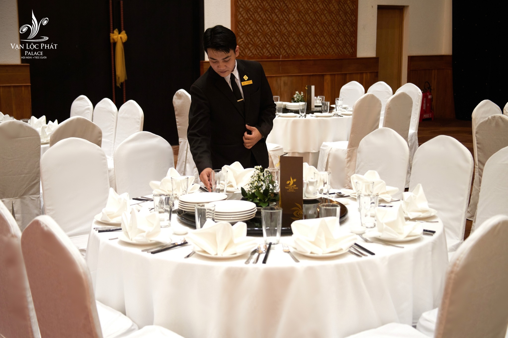 Với sảnh tiệc tại Vạn Lộc Phát Palace, mọi chi tiết từ ánh sáng, bố cục, trang trí đến trải nghiệm khách mời đều được chăm chút tỉ mỉ. Dù là phong cách nhẹ nhàng hay hoành tráng, từng khoảnh khắc trong ngày cưới của bạn đều sẽ trở nên trọn vẹn, tinh tế và đáng nhớ.