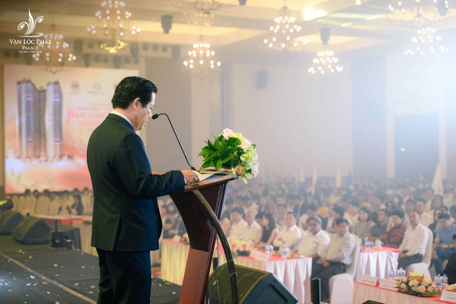 Khi làm việc với các đối tác đặt tiệc hội nghị khách hàng tại Trung Tâm Hội Nghị - Tiệc Cưới Vạn Lộc Phát Palace, đội ngũ nhân sự phụ trách tổ chức hội nghị tại trung tâm cũng luôn trao đổi tỉ mỉ, chi tiết về kịch bản mà khách hàng sẽ triển khai để có sự chuẩn bị chu đáo, trọn vẹn nhất cho mọi hạng mục, mọi ý tưởng đảm bảo hội nghị sẽ diễn ra hoàn hảo như dự kiến và mang lại những trải nghiệm đặc biệt nhất cho quan khách tham dự. Chính sự am hiểu, kinh nghiệm dày dặn và sự tận tâm khi tư vấn và hỗ trợ triển khai mà Trung Tâm Hội Nghị - Tiệc Cưới Vạn Lộc Phát Palace luôn nhận được sự tín nhiệm của khách hàng khi cần tìm kiếm một địa điểm tổ chức hội nghị uy tín, chất lượng ở khu vực Thuận An, Bình Dương.