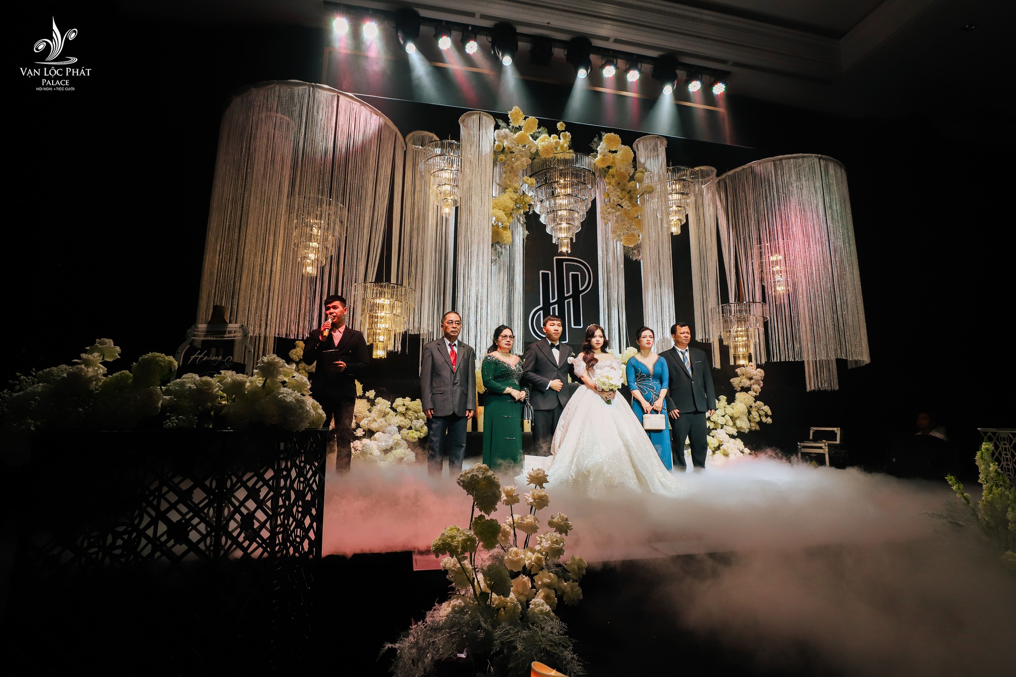 Chúng tôi cũng khuyến khích sự cá nhân hóa để nghi thức mang đậm dấu ấn của bạn. Bạn có thể yêu cầu khắc tên và ngày cưới lên bình hợp hôn, hoặc mở rộng nghi thức để cha mẹ hai bên hoặc con riêng (nếu có) cùng tham gia, biểu trưng cho sự hòa hợp và gắn kết của cả một đại gia đình. Với sự hỗ trợ tận tâm của Vạn Lộc Phát Palace, bạn có thể hoàn toàn an tâm tận hưởng trọn vẹn từng giây phút quý giá.