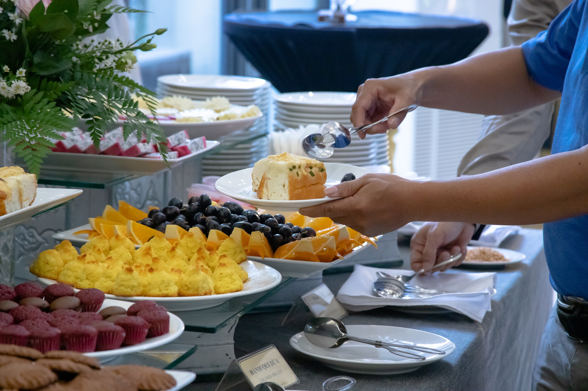 Tiếp theo, thực đơn teabreak sẽ được đề xuất dựa trên thời lượng buổi họp (sáng, chiều hay cả ngày) và tính chất khách tham dự (nội bộ, đối tác, khách VIP…). Đồng thời, vị trí đặt line teabreak cũng được tính toán sao cho thuận tiện di chuyển nhưng không ảnh hưởng đến không gian hội trường.